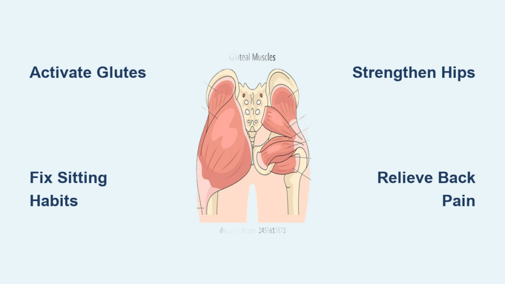 Begin with daily neuromuscular activation exercises to wake up dormant glutes, progress to controlled strengthening movements that build functional capacity, and maintain your results with strategic movement breaks throughout the day. Remember: your back pain might be shouting for attention, but your silent glutes are often the real conversation starters. Fix your foundation, and everything above it—including your pain—will finally find relief.