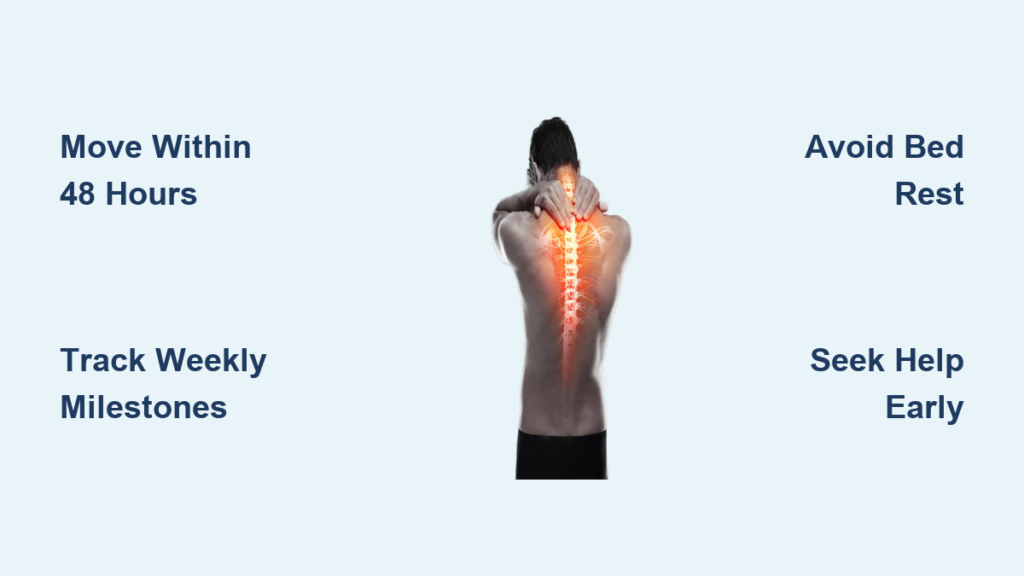 Seeking help within 48 hours slashes healing time by 30–50%—this narrow window prevents protective muscle spasms from becoming chronic. Physical therapy delivers the fastest results: 60% achieve full recovery by Week 4 with guided movement retraining. Conversely, waiting over a week extends recovery by 1–2 weeks, while untreated cases risk chronic pain (40% develop persistent issues). Skip passive treatments like prolonged bed rest—active care like walking and targeted stretches accelerates tissue repair far more than pills or ice alone.