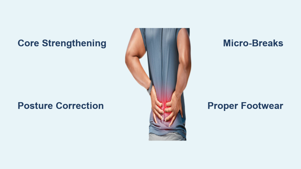 That sharp twinge in your lower back after just minutes of standing at the kitchen counter or checkout line isn’t